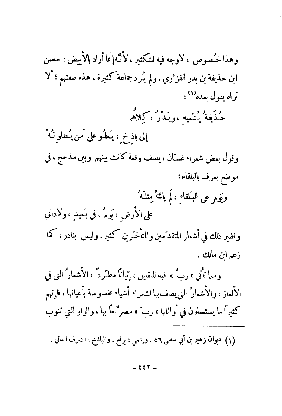 ونظير ذلك في أشعار المتقدمين والمتأخرين كثير. وليس بنادر، كما زعم ابن مالك.
