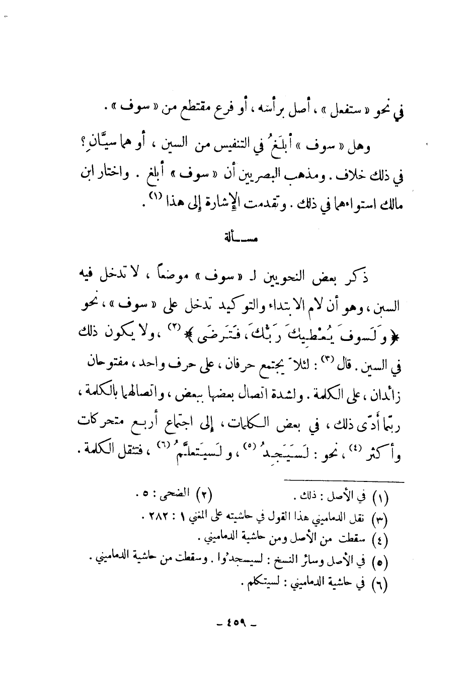 وهل سوف أبلغ في التنفيس من السين، أو هما سيان؟ في ذلك خلاف. ومذهب البصريين أن سوف أبلغ. واختار ابن مالك استواءهما في ذلك. وتقدمت الإشارة إلى هذا.