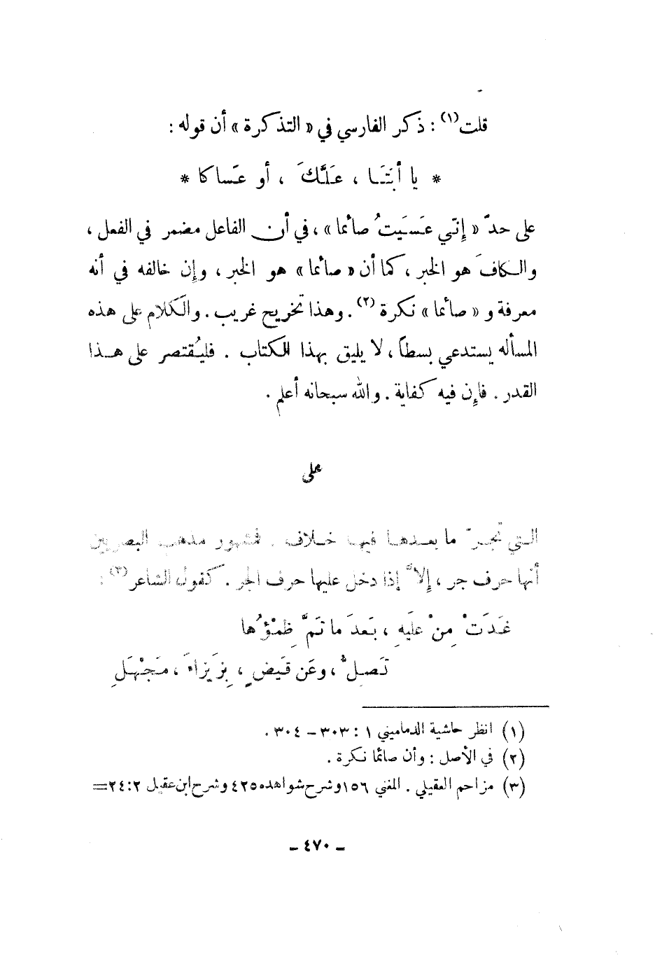قلت: ذكر الفارسي في التذكرة أن قوله: