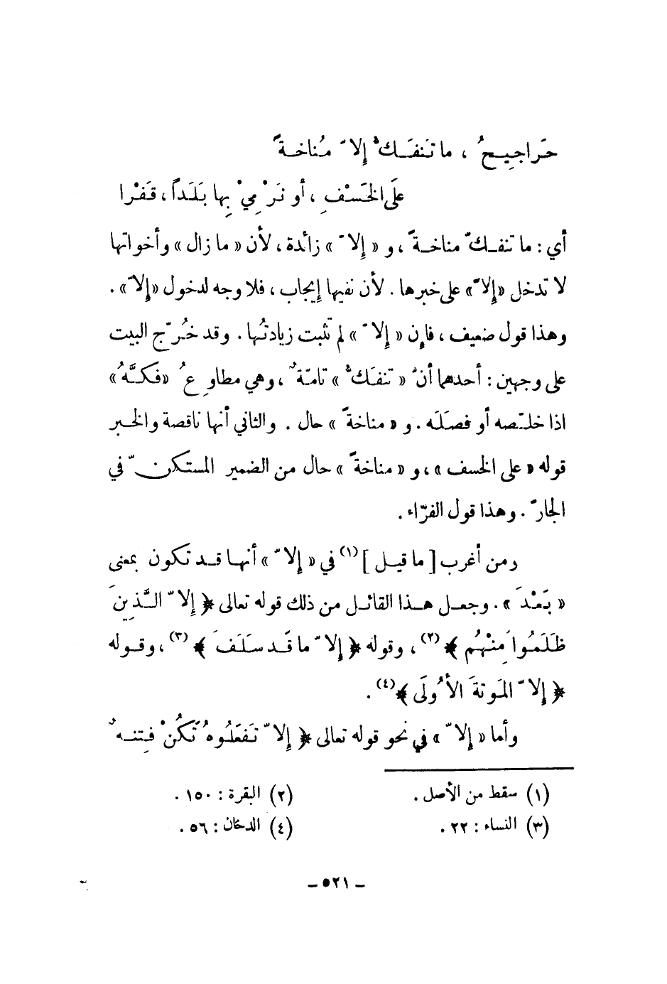 ومن أغرب ما قيل في إلا أنها قد تكون بمعنى بعد. وجعل هذا القائل من ذلك قوله تعالى " إلا الذين ظلموا منهم "، وقوله " إلا ما قد سلف "، وقوله " إلا الموتة الأولى ".