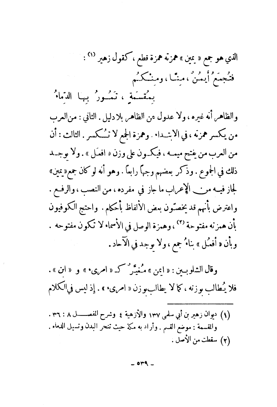 والظاهر أنه غيره، ولا عدول عن الظاهر بلا دليل. الثاني: من العرب من يكسر همزته، في الابتداء. وهمزة الجمع لا تكسر. الثالث: أن من العرب من يفتح ميمه، فيكون على وزن افعل. ولا يوجد ذلك في الجموع. وذكر بعضهم وجهاً رابعاً. وهو أنه لو كان جمع يمين لجاز فيه من الإعراب ما جاز في مفرده، من النصب، والرفع. واعترض بأنهم قد يخصون بعض الألفاظ بأحكام. واحتج الكوفيون بأن همزته مفتوحة، وهمزة الوصل في الأسماء لا تكون مفتوحه. وبأن أفعل بناء جمع، ولا يوجد في الآخاد.