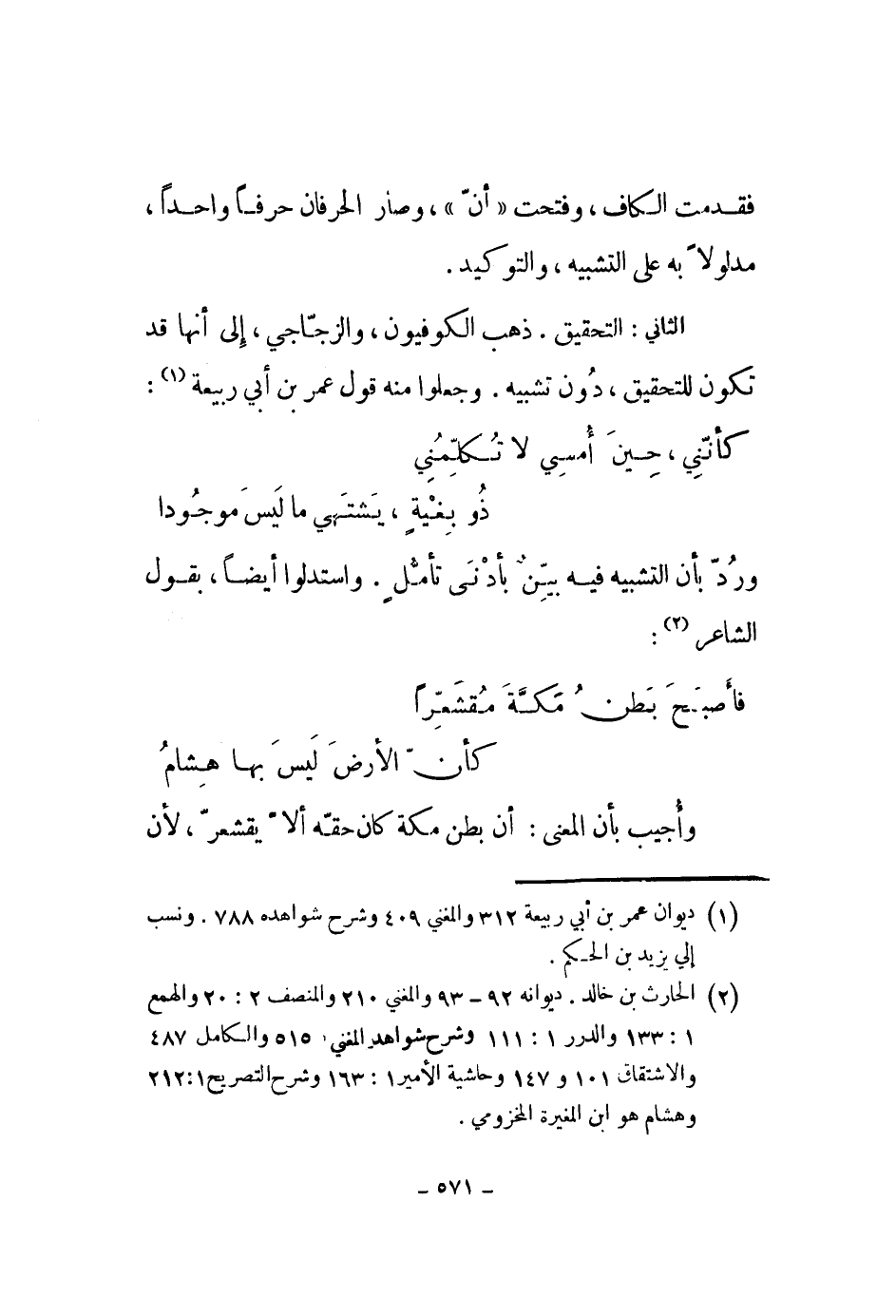 الثاني: التحقيق. ذهب الكوفيون، والزجاجي، إلى أنها قد تكون للتحقيق، دون تشبيه. وجعلوا منه قول عمر بن أبي ربيعة: