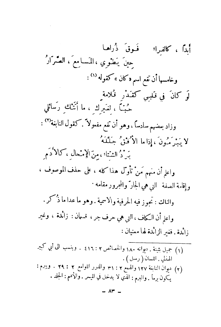 واعلم أن الكاف، التي هي حرف جر، قسمان: زائدة، وغير زائدة. فغير الزائدة لها معنيان: