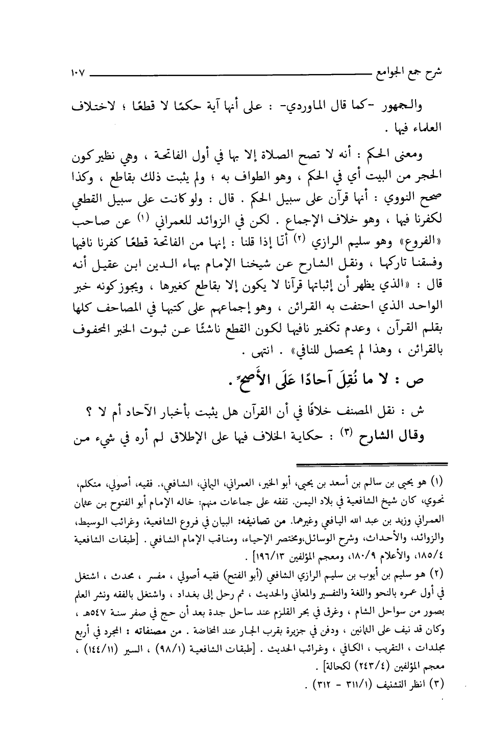 ش: نقل المصنف خلافاً في أن القرآن هل يثبت بأخبار الآحاد أم لا؟