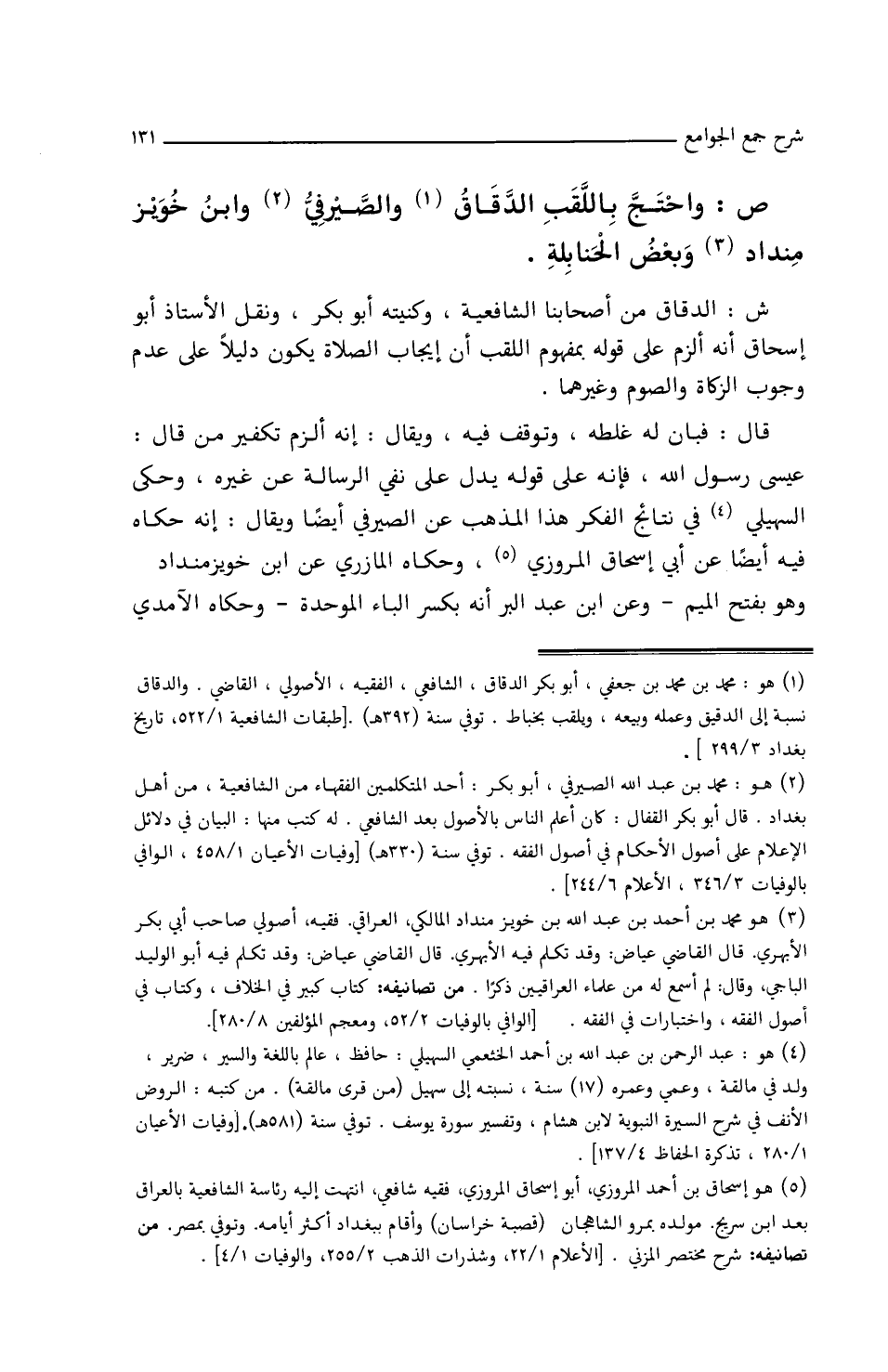 ص: واحتج باللقب الدقاق والصيرفي وابن خويز منداد وبعض الحنابلة.