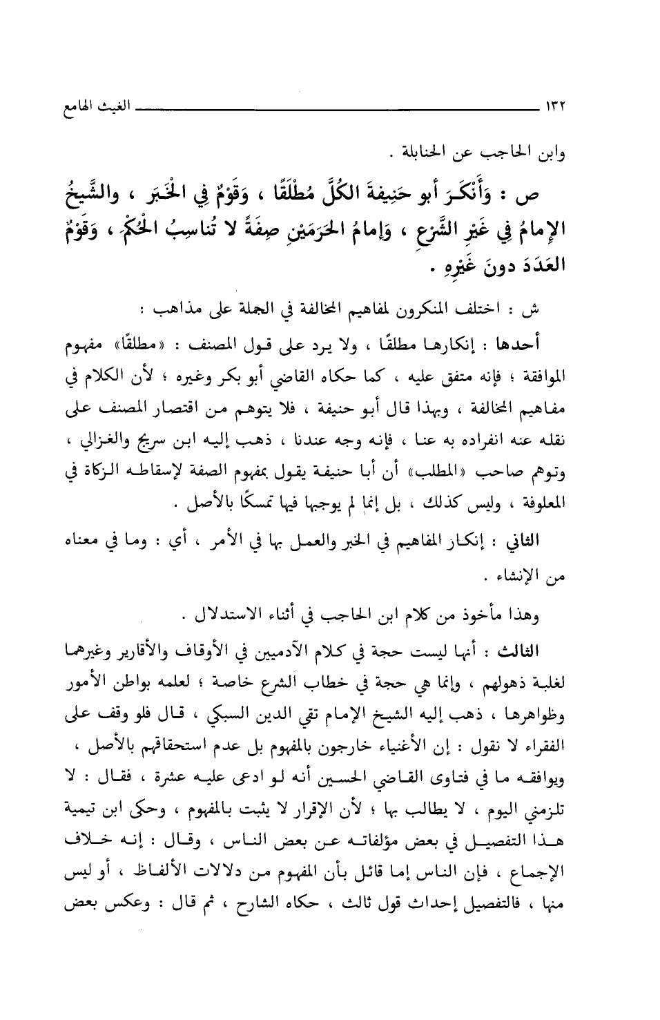 ش: اختلف المنكرون لمفاهيم المخالفة في الجملة على مذاهب.