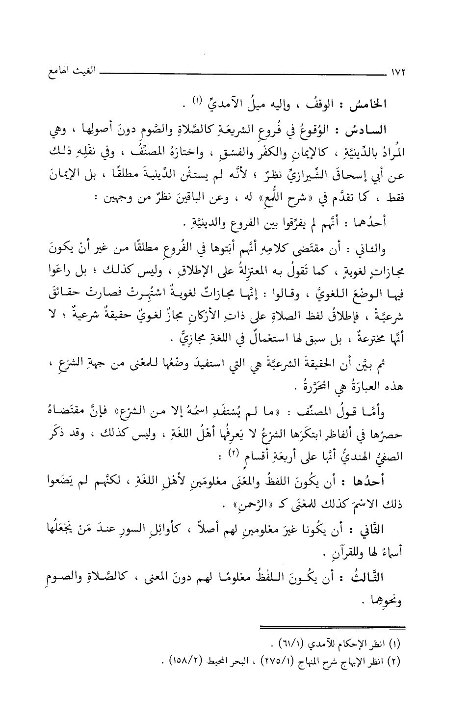 وأما قول المصنف: (ما لم يستفد اسمه إلا من الشرع) فإن/ ٣٦أ/ د) مقتضاه حصرها في ألفاظ ابتكرها الشرع لا يعرفها أهل اللغة، وليس كذلك، وقد ذكر الصفي الهندي أنها على أربعة أقسام.