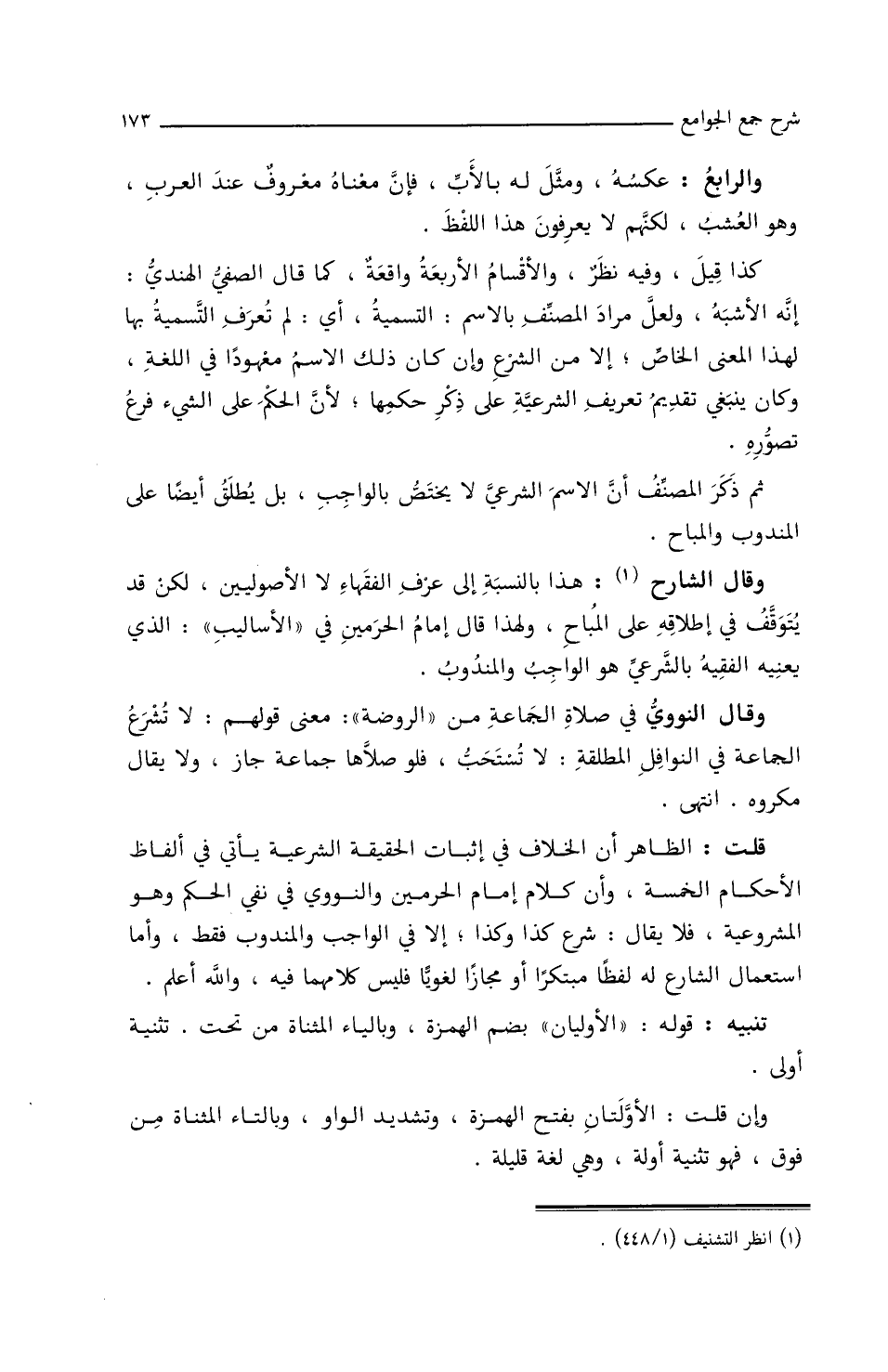 قلت: الظاهر أن الخلاف في إثبات الحقيقة الشرعية يأتي في ألفاظ الأحكام الخمسة، وأن كلام إمام الحرمين والنووي في نفي الحكم وهو المشروعية، فلا يقال: شرع كذا وكذا، إلا في الواجب والمندوب فقط، وأما استعمال الشارع له لفظاً مبتكراً أو مجازاً لغوياً فليس كلامهما فيه والله أعلم.