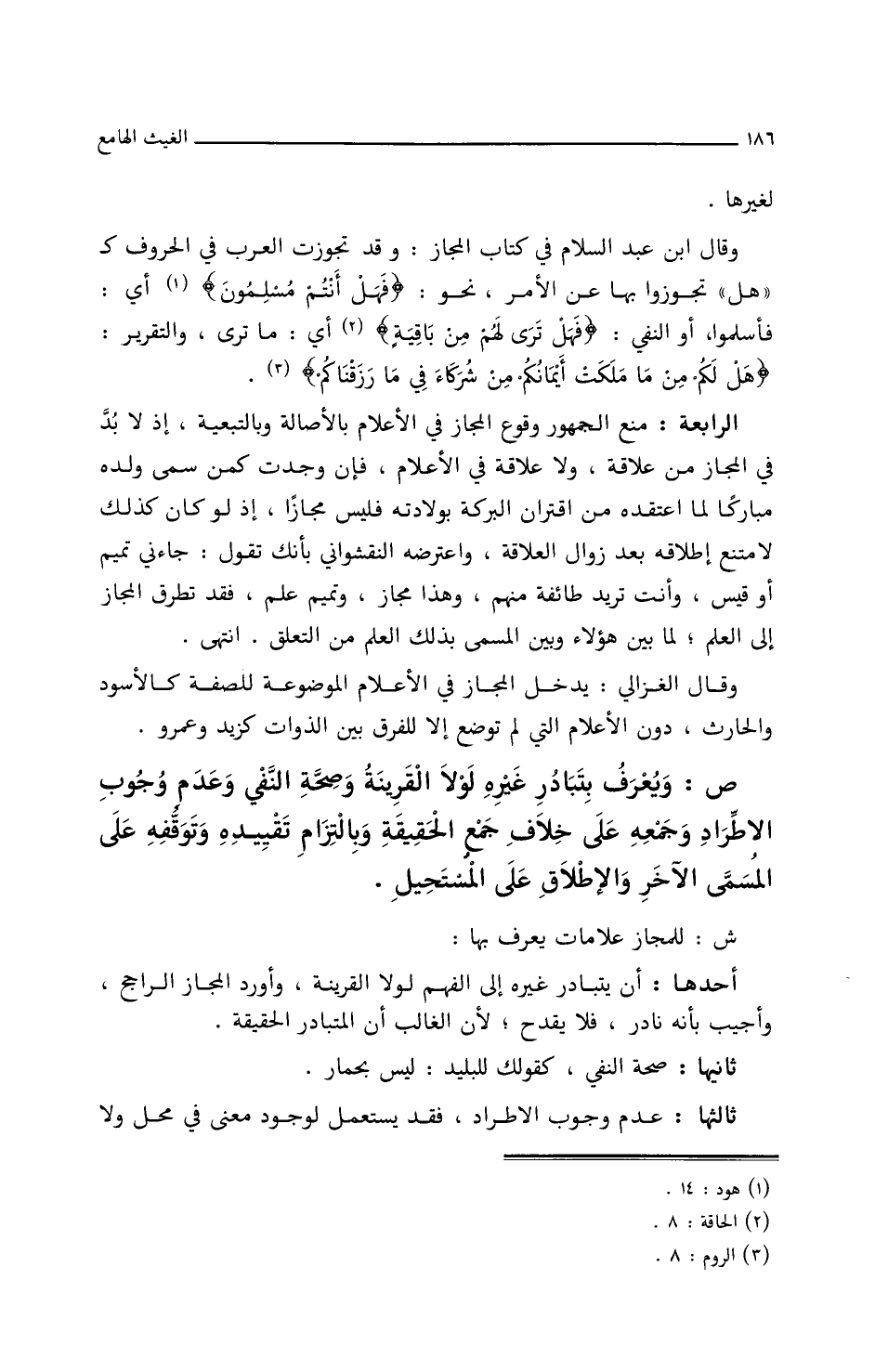ش: للمجاز علامات يعرف بها: