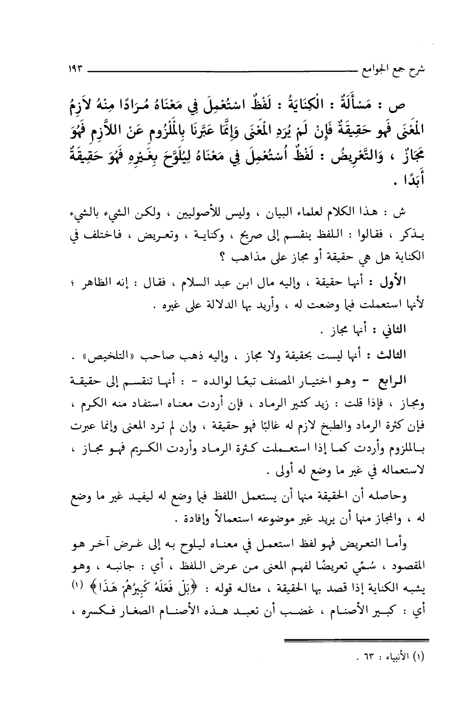 ش: هذا الكلام لعلماء البيان، وليس للأصوليين، ولكن الشيء بالشيء يذكر، فقالوا: اللفظ ينقسم إلى صريح، وكناية، وتعريض، فاختلف في الكناية هل هي حقيقة أو مجاز على مذاهب؟