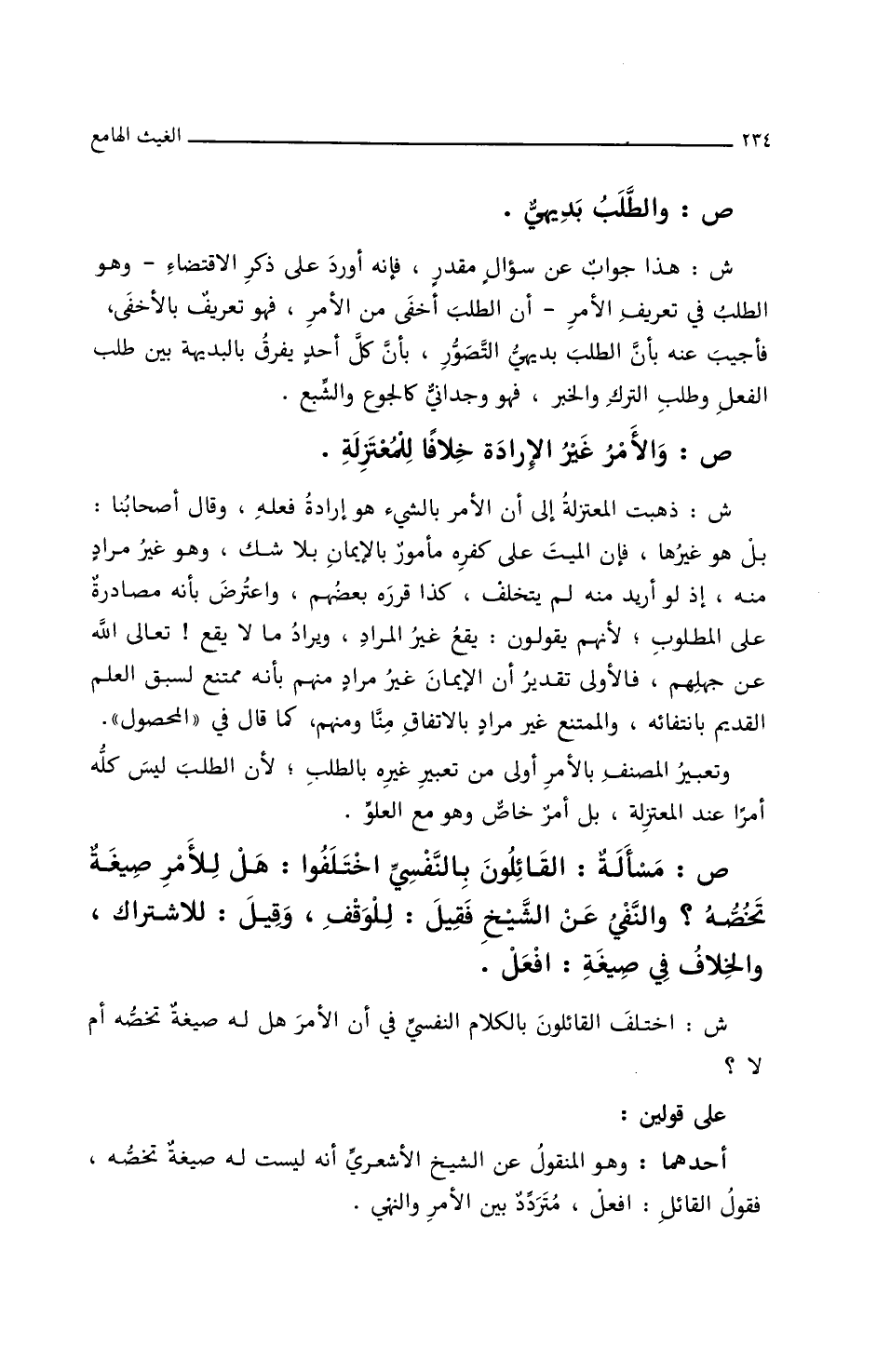 وتعبير المصنف بالأمر أولى من تعبير غيره بالطلب، لأن الطلب ليس كله أمراً عند المعتزلة، بل أمر خاص وهو مع العلو.
