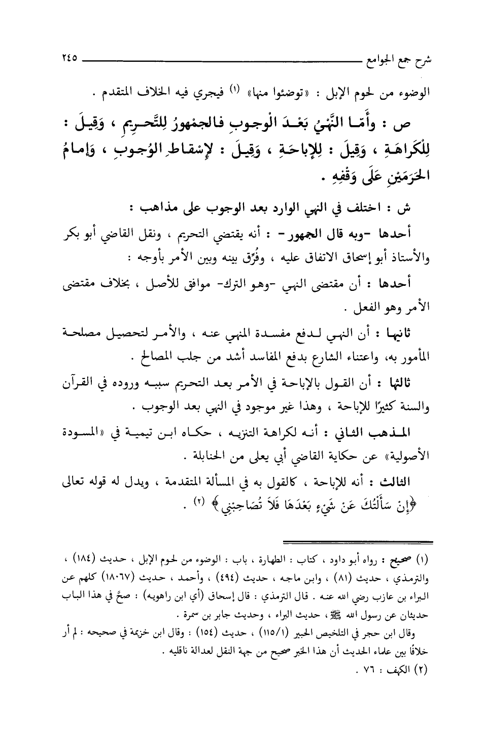 ش: اختلف في النهي الوارد بعد الوجوب على مذاهب.