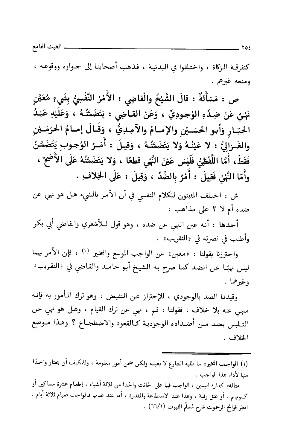 ش: اختلف المثبتون للكلام النفسي في أن الأمر بالشيء هل هو نهي عن ضده أم لا؟ على مذاهب.