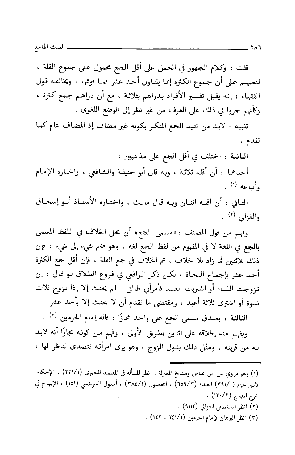 قلت: وكلام الجمهور في الحمل على أقل الجمع محمول على جموع القلة، لنصهم على أن جموع الكثرة إنما يتناول أحد عشر فما فوقها، ويخالفه قول الفقهاء: إنه يقبل تفسير الأفراد بدراهم بثلاثة، مع أن دراهم جمع كثرة، وكأنهم جروا في ذلك على العرف من غير نظر إلى الوضع اللغوي.