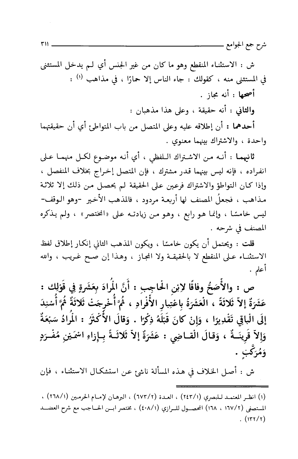 قلت: ويحتمل أن يكون خامسا، ويكون المذهب الثاني إنكار إطلاق لفظ الاستثناء على المنقطع لا بالحقيقة ولا المجاز، وهذا إن صح غريب والله أعلم.