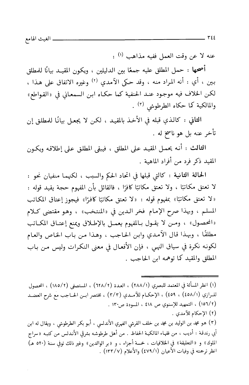 أصحها: حمل المطلق عليه جمعا بين الدليلين، ويكون المقيد بيانا للمطلق أي بين أنه المراد منه، وقد حكى الآمدي وغيره الاتفاق على هذا لكن/ (٩٨أ/م) الخلاف فيه موجود عند الحنفية كما حكاه ابن السمعاني في (القواطع) والمالكية كما حكاه الطرطوشي.