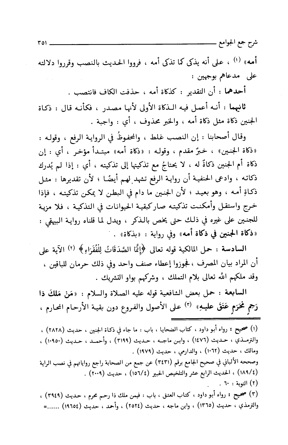 أمه)) على أنه يذكى كما تذكى أمه، فرووا الحديث بالنصب وقرروا دلالته على مدعاهم/بوجهين: