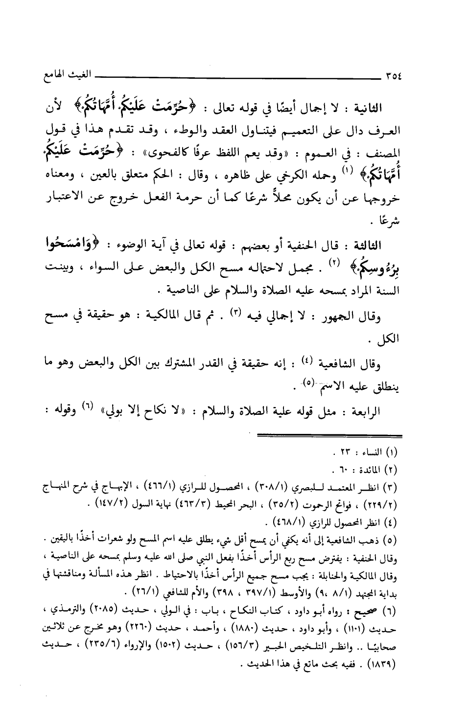 الثانية: لا إجمال أيضا في قوله تعالى: {حرمت عليكم أمهاتكم} لأن العرف دال على التعميم فيتناول العقد والوطء، وقد تقدم هذا في قول المصنف: في العموم: (وقد يعم اللفظ عرفا كالفحوى) {حرمت عليكم أمهاتكم} وحمله الكرخي على ظاهره وقال: الحكم متعلق بالعين، ومعناه خروجها عن أن يكون/ (٨٢ب/د) محلا شرعا كما أن حرمة الفعل خروج عن الاعتبار شرعا.