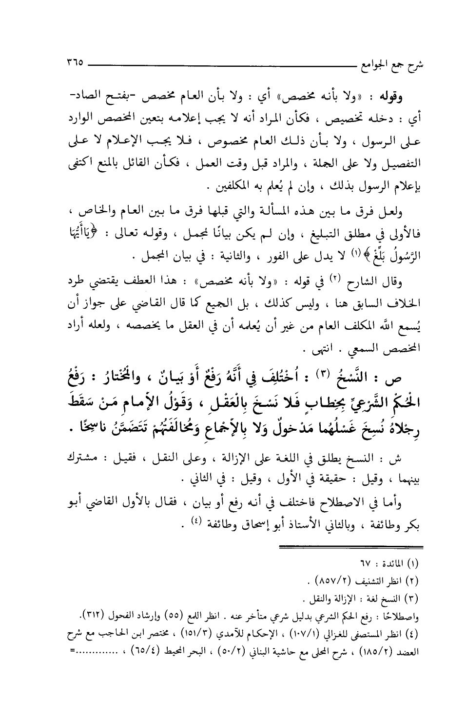 ص: النسخ: اختلف في أنه رفع أو بيان والمختار رفع الحكم الشرعي بخطاب فلا نسخ بالعقل وقول الإمام من سقط رجلاه/نسخ غسلهما مدخول ولا بالإجماع ومخالفتهم تتضمن ناسخا.