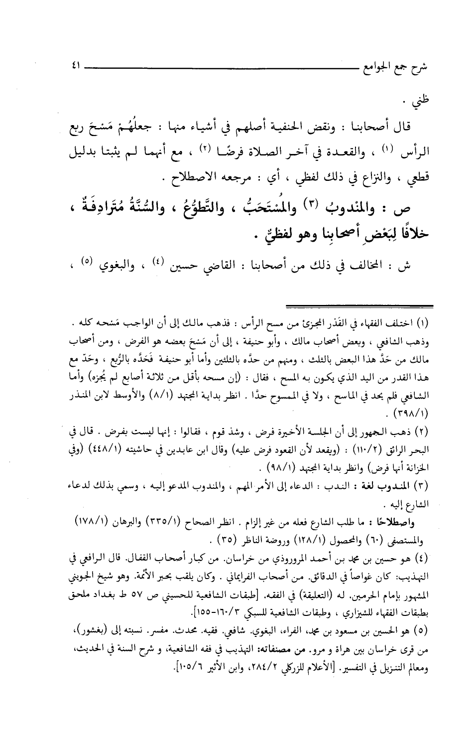 ص: والمندوب، والمستحب، والتطوع، والسنة مترادفة، خلافاً لبعض أصحابنا وهو لفظي.