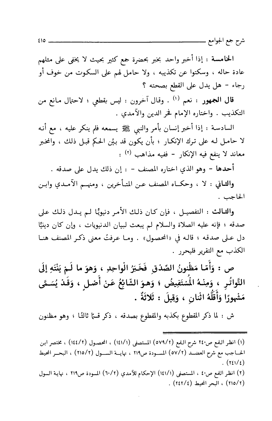 ش: لما ذكر المقطوع بكذبه والمقطوع بصدقه ذكر قسما ثالثا وهو مظنون
