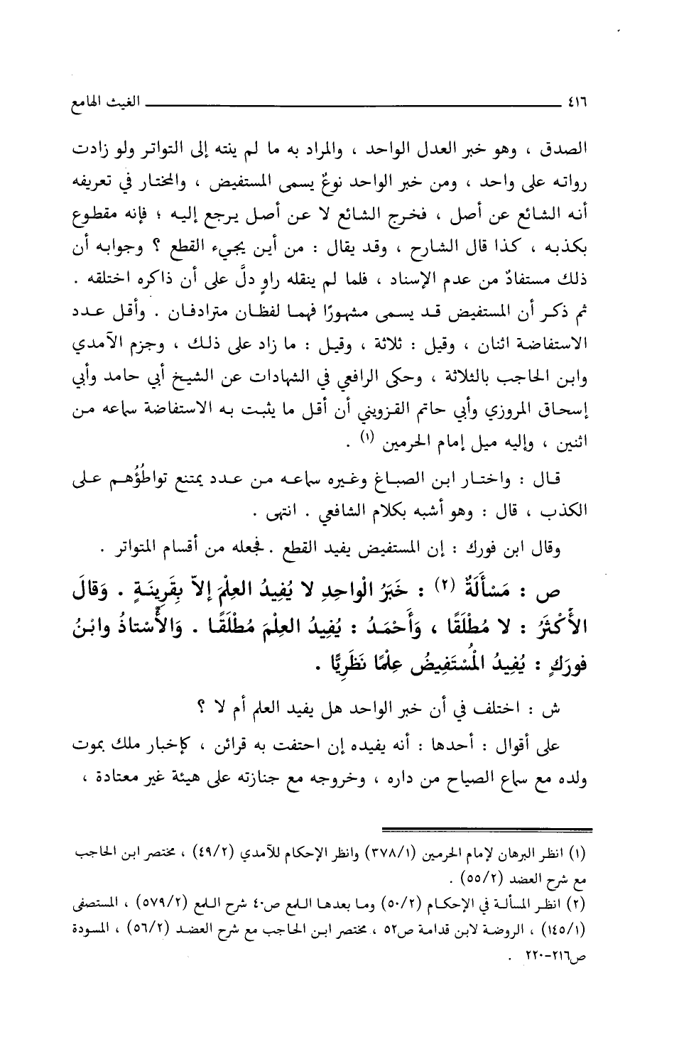 ش: اختلف في أن خبر الواحد هل يفيد العلم أم لا؟