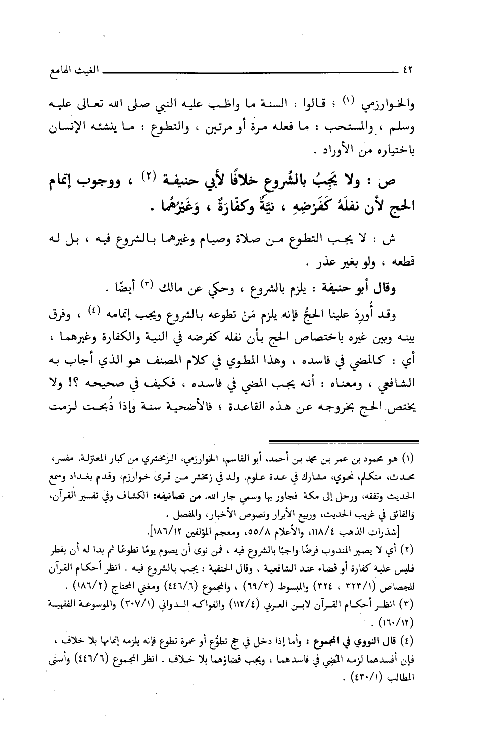 وقد أورد علينا الحج فإنه يلزم من تطوعه بالشروع ويجب إتمامه، وفرق بينه وبين غيره باختصاص الحج بأن نفله كفرضه في النية والكفارة وغيرهما، أي: كالمضي في فاسده، وهذا المطوي في كلام المصنف هو الذي أجاب به الشافعي، ومعناه: أنه يجب المضي في فاسده، فكيف في صحيحه؟ ولا يختص الحج بخروجه عن هذه القاعدة، فالأضحية سنة وإذا ذبحت لزمت