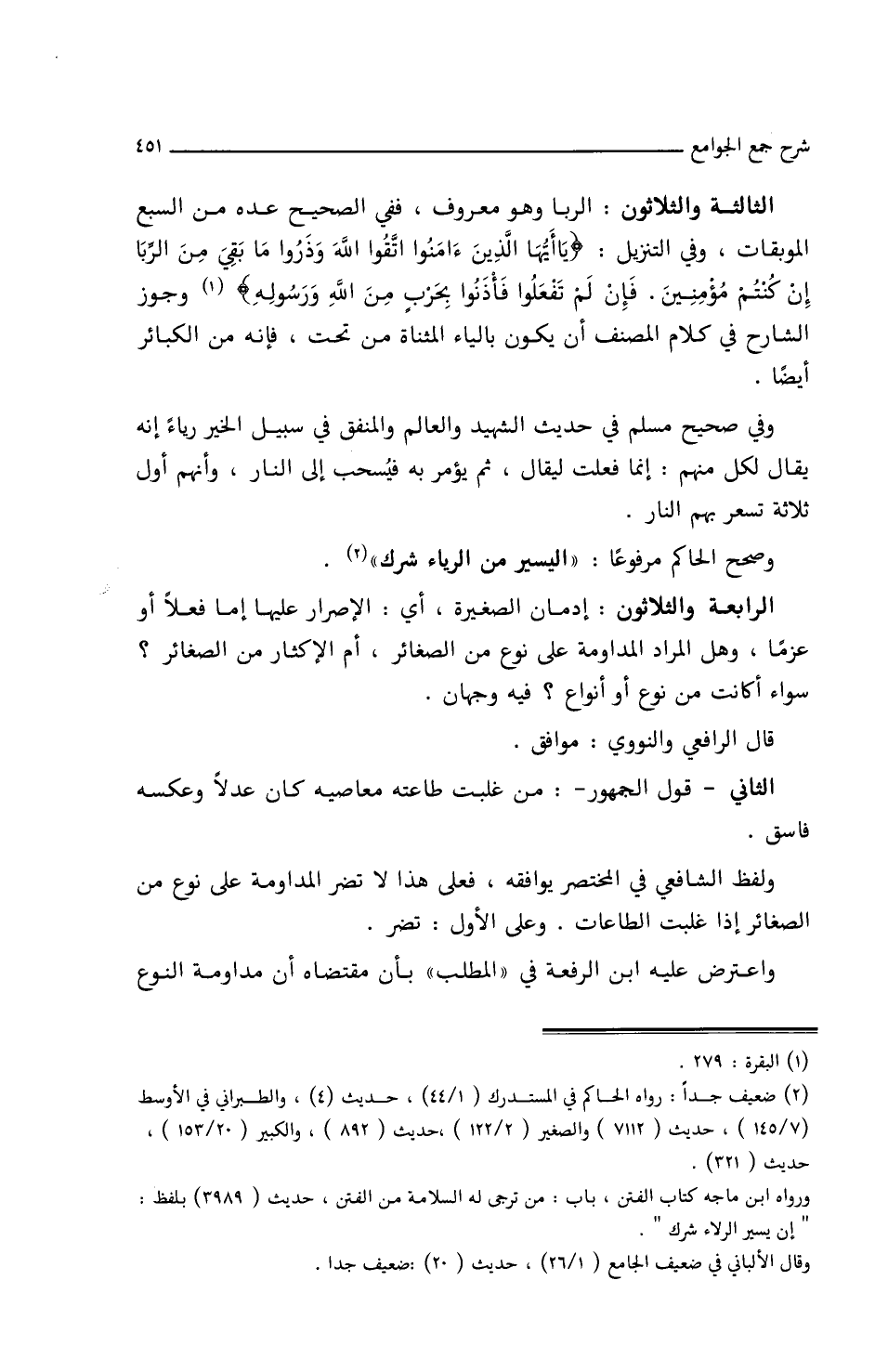 الرابعة والثلاثون: إدمان الصغيرة أي: الإصرار عليها إما فعلا أو عزما وهل المراد المداومة على نوع من الصغائر أم الإكثار من الصغائر؟ سواء أكانت من نوع أو أنواع؟ فيه وجهان.