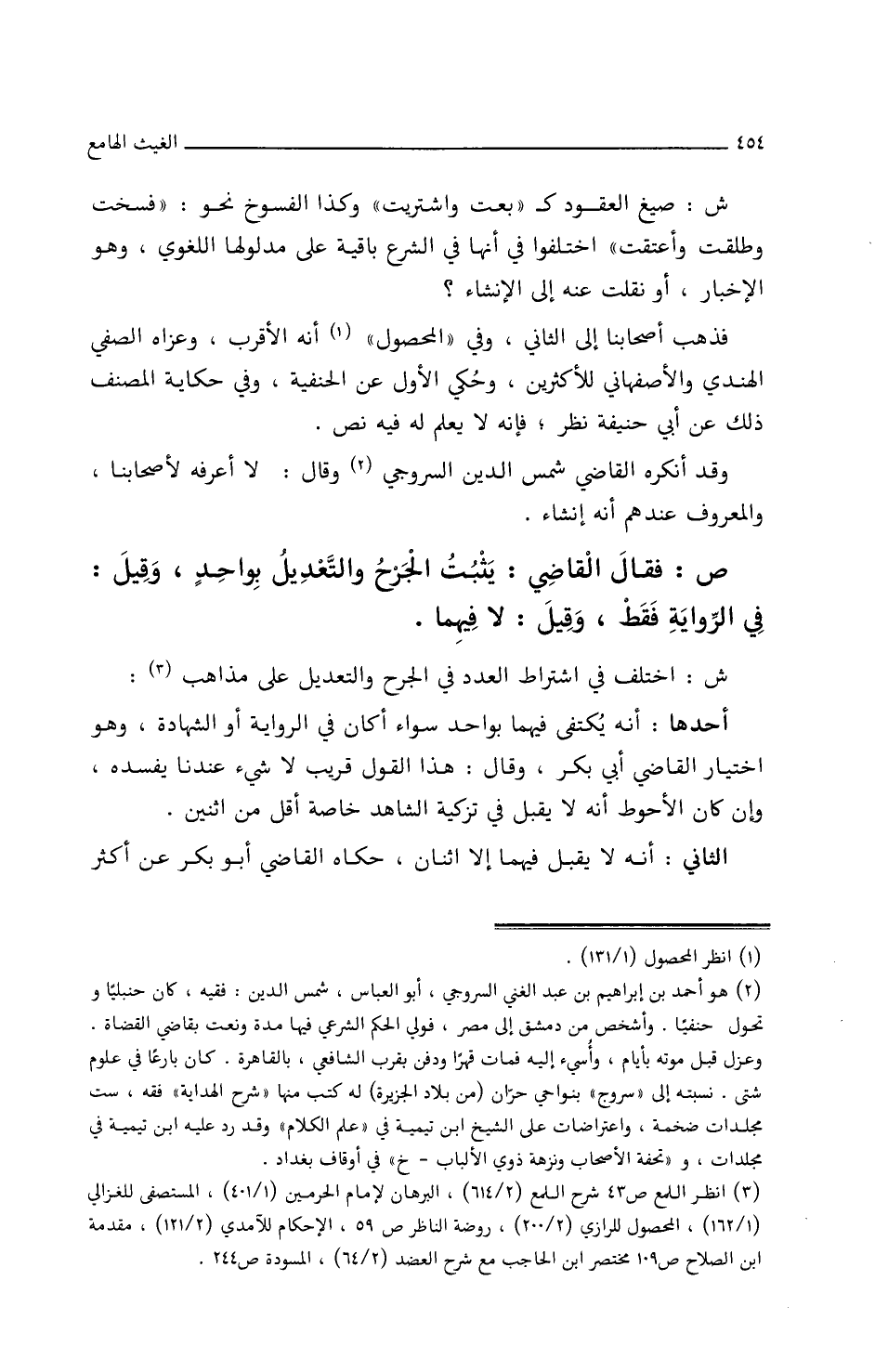ص: فقال القاضي: يثبت الجرح والتعديل بواحد وقيل: في الرواية فقط وقيل: لا فيهما.