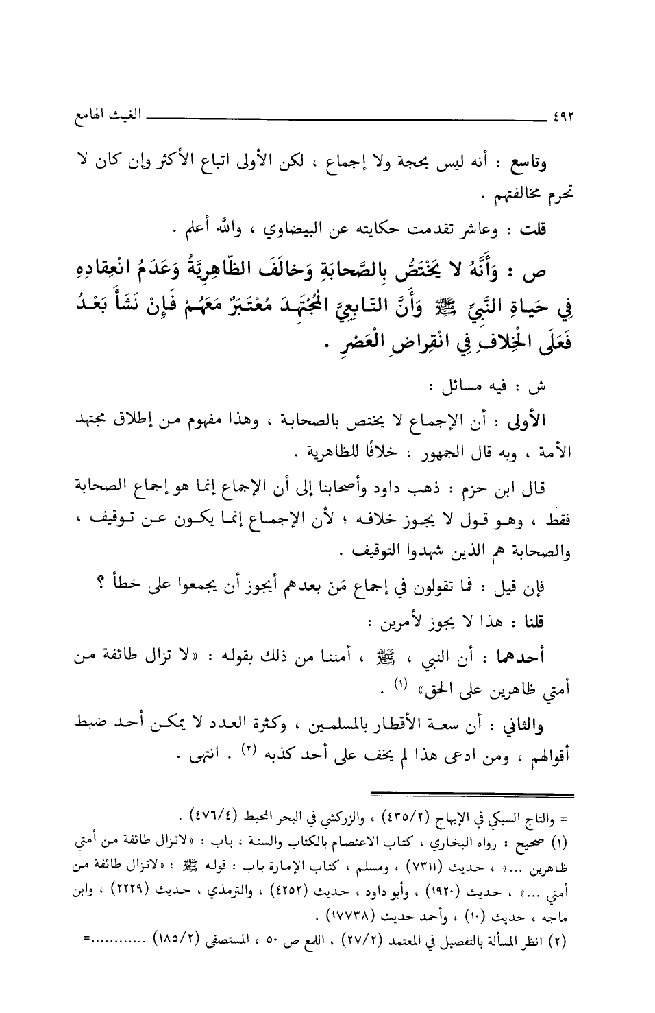 ص: وأنه لا يختص بالصحابة وخالف الظاهرية وعدم انعقاده في حياة النبي صلى الله عليه وسلم وأن التابعي المجتهد معتبر معهم فإن نشأ بعد فعلى الخلاف في انقراض العصر.