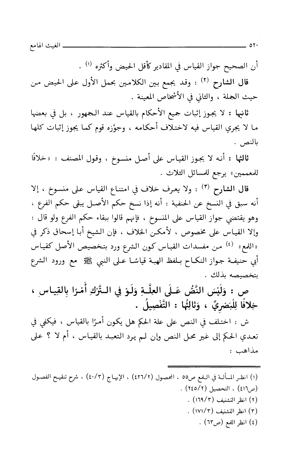 ثَالِثُهَا: أَنَّهُ لاَ يَجُوزُ القِيَاسُ علَى أَصْلٍ منْسوخٍ، وقَوْلُ المُصَنِّفِ: (خِلاَفًا للمُعَمِّمِينَ) يَرْجِعُ للمَسَائِلِ الثَّلاَثِ.