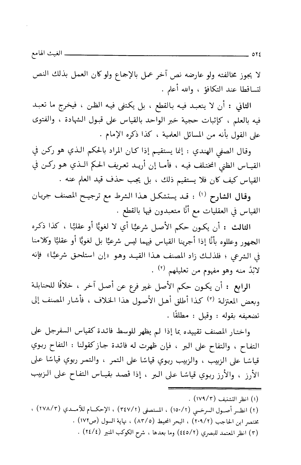 الثَّالِثُ: أَنْ يَكُونَ حُكْمُ الأَصْلِ شَرْعِيًّا أَي لاَ لُغَوِيًّا أَوْ عَقْلِيًّا، كَذَا ذَكَرَهُ الجُمْهُورُ، وعَلَّلُوه بأَنَّا إِذَا أَجْرَيْنَا القِيَاسَ فِيهمَا لَيْسَ شَرْعِيًّا بَلْ لُغَوِيًّا أَوْ عَقْلِيًّا، وكَلاَمُنَا فِي الشَّرْعِيِّ، فلِذَلِكَ زَادَ المُصَنِّفُ هذَا القَيْدَ وهو (إِنِ اسْتَلْحَقَ شَرْعِيًّا) فإِنَّه لاَ بُدَّ مِنْهُ وهو مَفْهُومٌ مِنْ تَعْلِيلِهِم.