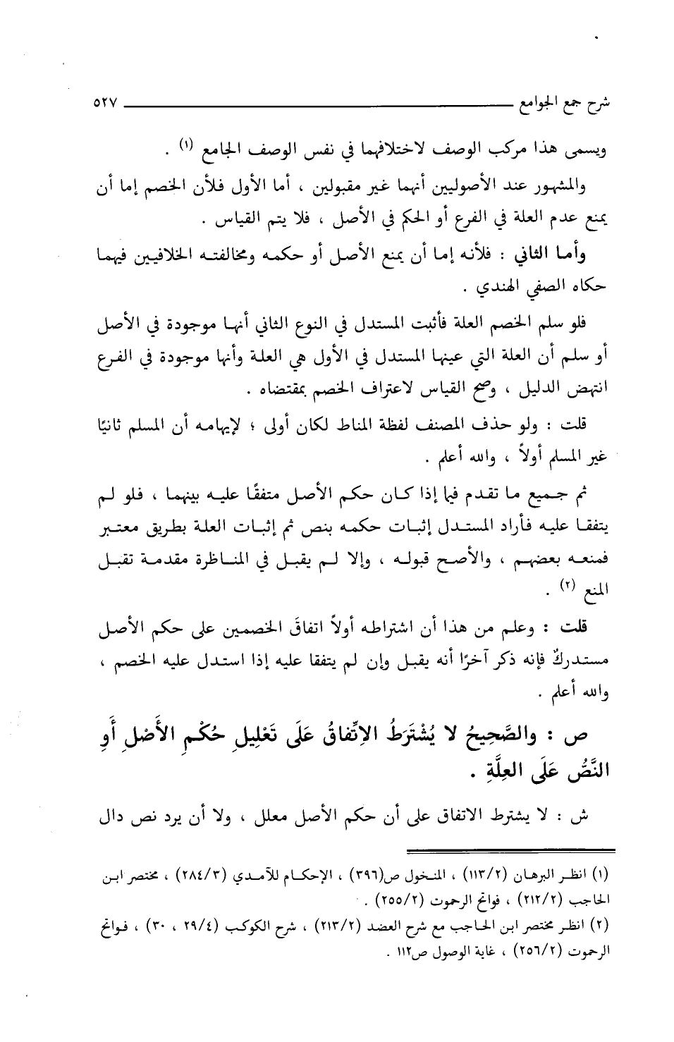 قُلْتُ: وعُلِمَ مِنْ هذَا أَنَّ اشْتِرَاطَه أَوَّلاً اتِّفَاقَ الخَصْمَيْنِ علَى حُكْمِ الأَصْلِ مُسْتَدْرَكٌ، فإِنَّه ذَكَرَ آخِرًا أَنَّهُ يُقْبَلُ وإِنْ لَمْ يَتَّفِقَا عَلَيْهِ إِذَا اسْتَدَلَّ عَلَيْهِ الخَصْمُ، وَاللَّهُ أَعْلَمُ.