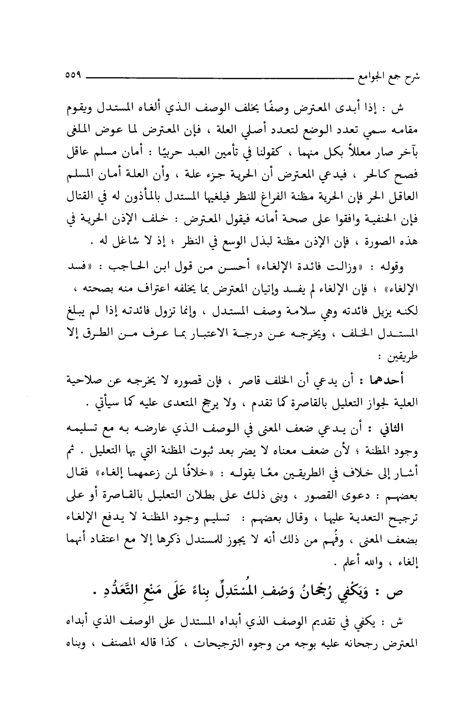 ثم أَشَارَ إِلَى خِلاَفٍ فِي الطَّرِيقَيْنِ مَعًا بِقَوْلِهِ: (خِلاَفًا لِمَنْ زَعَمَهُمَا إِلْغَاءً) فقَالَ بَعْضُهُم: دَعْوَى القُصُورِ، وبنَى ذَلِكَ علَى بُطْلاَنِ التَّعْلِيلِ بِالقَاصِرَةِ أَو علَى تَرْجِيحِ التَّعْدِيَةِ عَلَيْهَا، وقَالَ بَعْضُهُم: تَسْلِيمُ وُجُودِ المَظِنَّةِ لاَ يَدْفَعُ الإِلْغَاءَ بِضَعْفِ المَعْنَى، وفُهِمَ من ذَلِكَ أَنَّهُ لاَ يَجُوزُ للمُسْتَدِلِّ ذِكْرُهَا، إِلا مَعَ اعْتِقَادِ أَنَّهُمَا إِلغَاءٌ، وَاللَّهُ أَعْلَمُ.