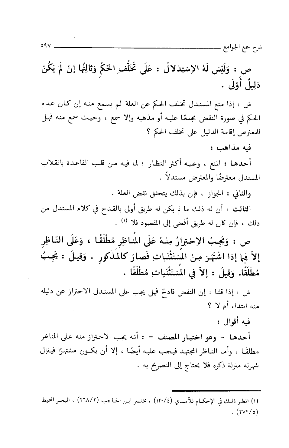 أَحَدُهَا ـ وهو اختيَارُ المُصَنِّفِ ـ: أَنَّهُ يجِبُ الاحترَازُ مِنْهُ علَى المُنَاظِرِ مُطْلَقًا، وأَمَّا النَّاظرُ المُجْتَهِدُ فِيجِبُ عَلَيْهِ أَيضًا، إِلا أَنْ يَكُونَ مشتهرًا فِينزِلُ شهرتَه منزلةَ ذِكْرَهِ فَلاَ يحتَاجُ إِلَى التّصريحِ بِهِ.