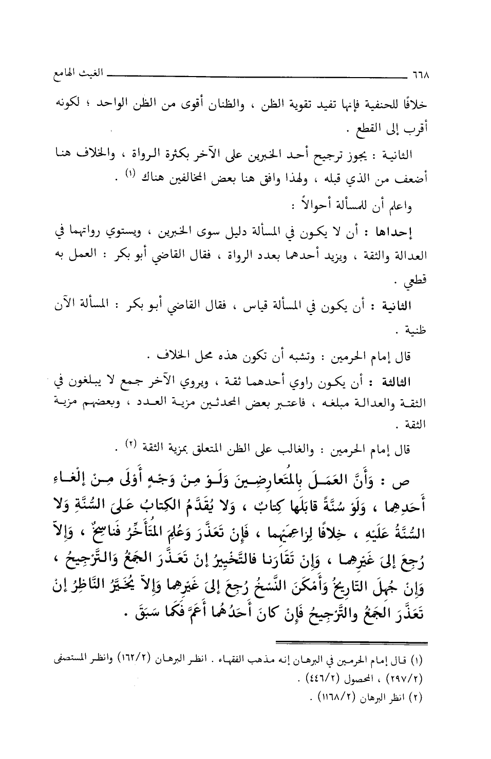 قَالَ إِمَامُ الحَرَمَيْنِ: وَالغَالبُ علَى الظّنِّ المُتَعَلِّقُ بمزيةِ الثّقةِ.