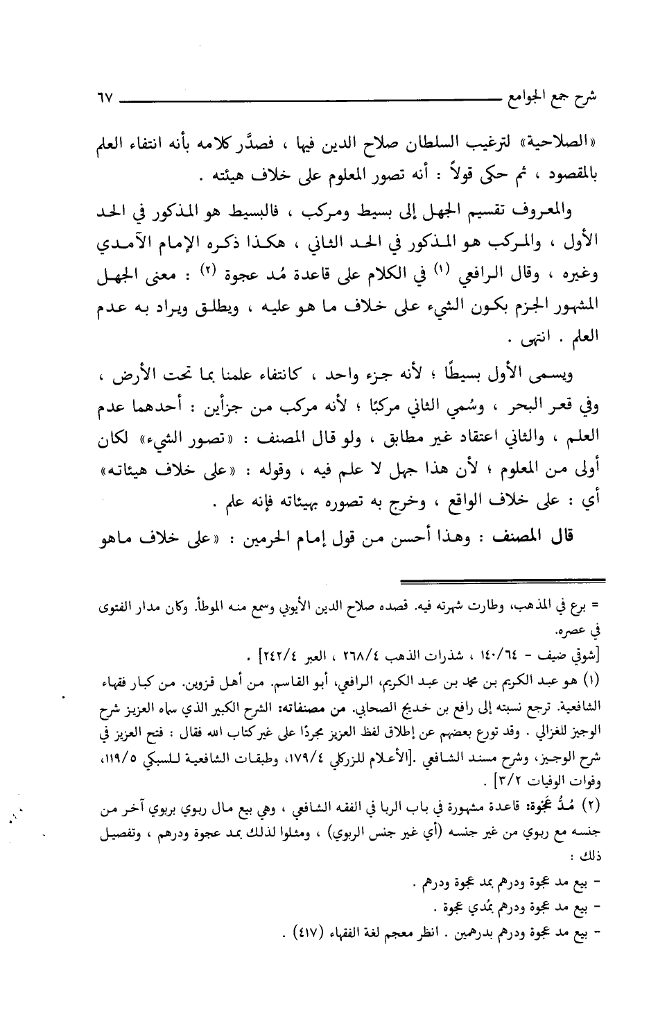 (الصلاحية) لترغيب السلطان صلاح الدين/ (١٢أ/م) فيها، فصدر كلامه بأنه انتفاء العلم بالمقصود، ثم حكى قولاً: أنه تصور المعلوم على خلاف هيئته.