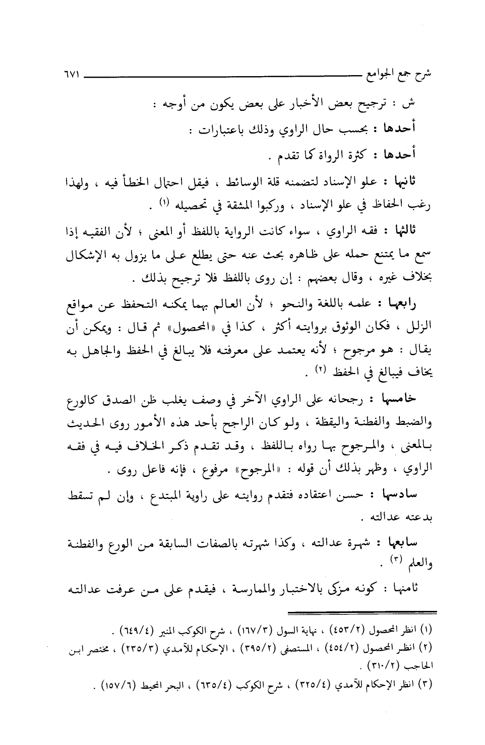 ش: ترجيحُ بَعْضِ الأَخبَارِ علَى بَعْضٍ يَكُونُ مِنْ أَوْجُهٍ.