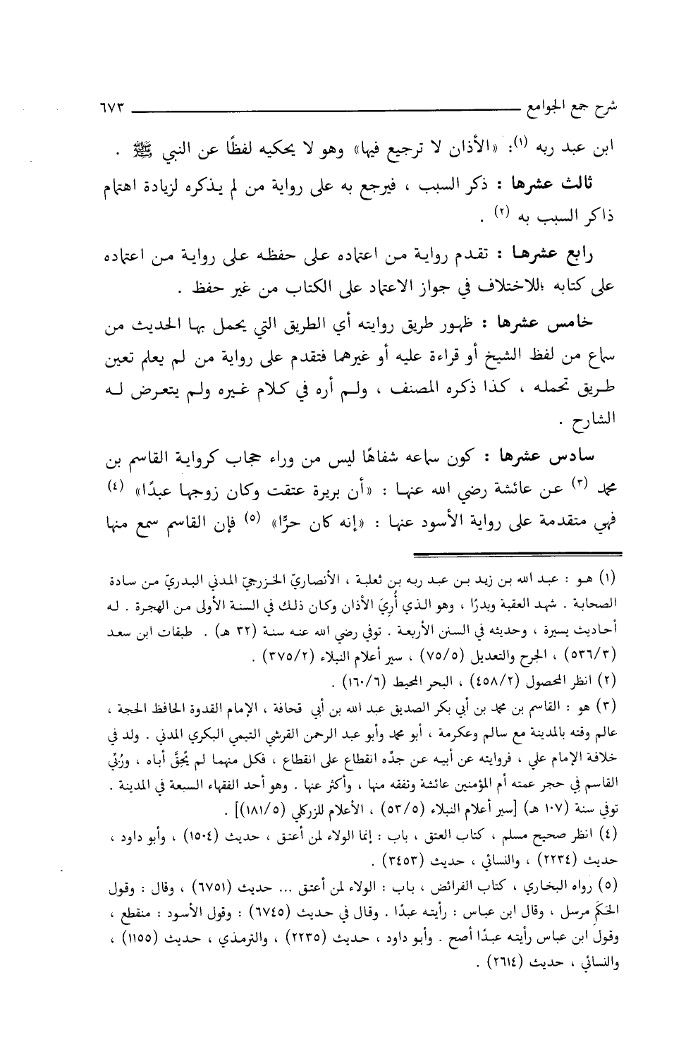 سَادسَ عشرِهَا: كَوْنُ سمَاعِهِ شفَاهًا لَيْسَ مِنْ ورَاءِ حِجَابٍ،/ (٢٠٧/أَ/م) كروَايةِ القَاسِمِ بْنِ محمَّدٍ عن عَائشةَ رضِي اللَّه عَنْهَا: (أَنَّ بُرَيْرَةَ عُتِقَتْ وكَانَ زَوْجُهَا عَبْدًا) فهي متقدِّمَةٌ علَى روَايةِ الأَسودِ عَنْهَا (إِنَّهُ كَانَ حُرًّا) فإِنَّ القَاسمَ سُمِعَ مِنْهَا