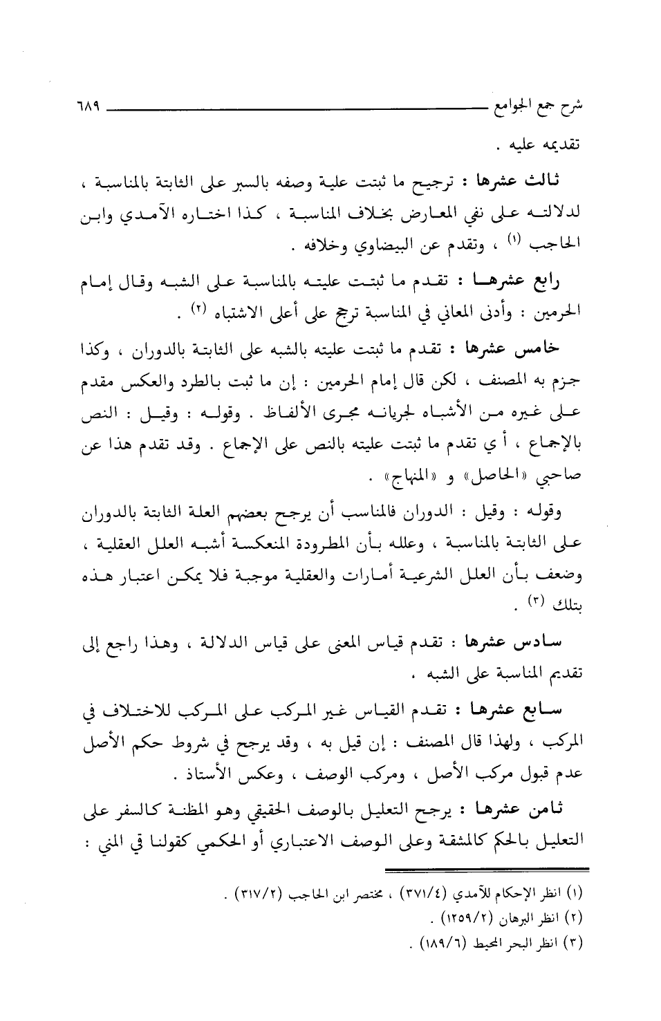 رَابعُ عشرِهَا: تَقَدُّمَ مَا ثَبَتَتْ عِلِّيَّتُهُ بِالمنَاسبةِ علَى الشَّبَهِ، قَالَ إِمَامُ الحَرَمَيْنِ: وأَدْنَى المعَاني فِي المنَاسبةِ تَرْجُحُ علَى أَعلَى الاشتبَاهِ.