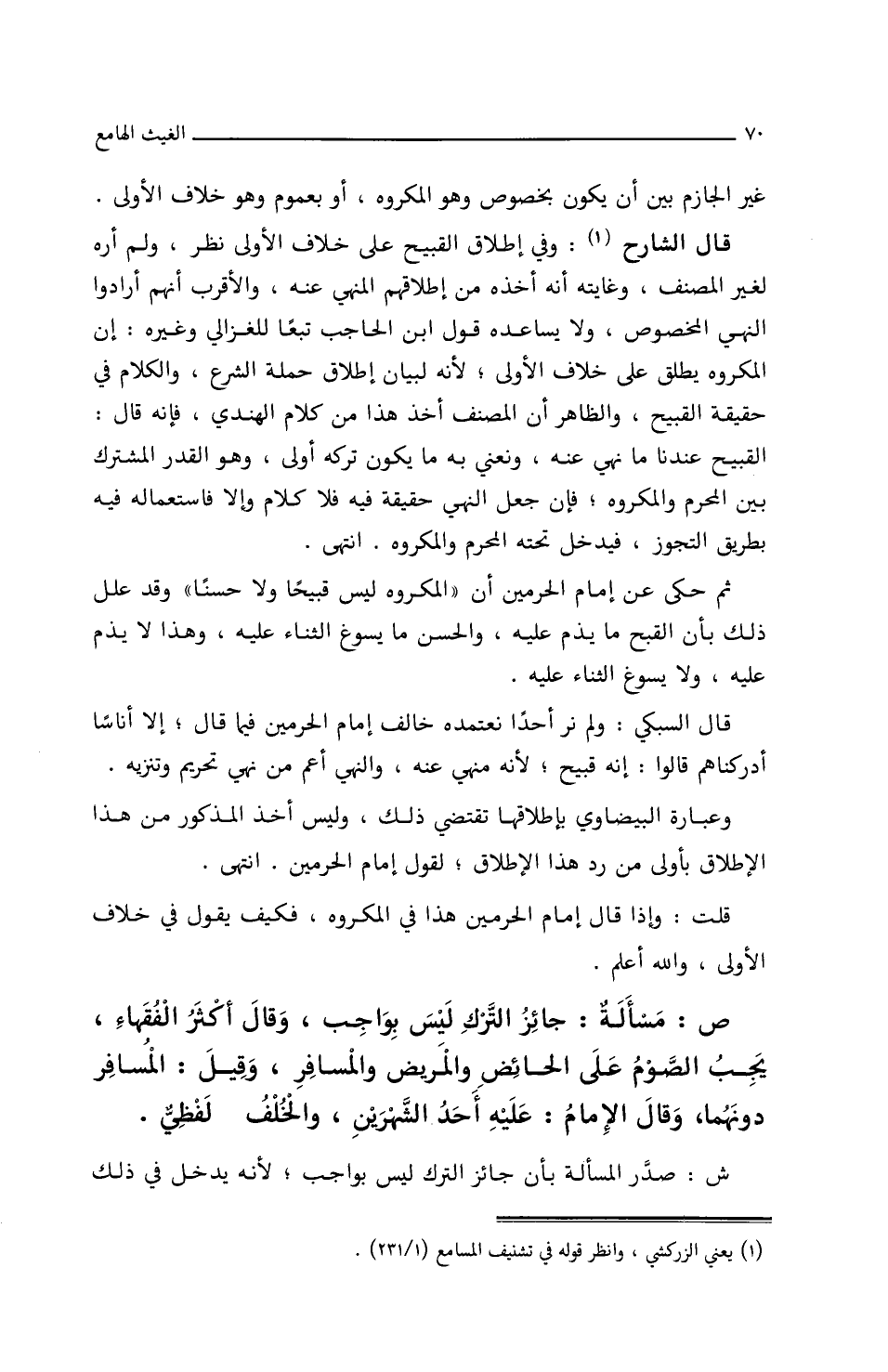قال السبكي: ولم نر أحداً نعتمده خالف إمام الحرمين فيما قال، إلا أناساً أدركناهم قالوا: إنه قبيح، لأنه منهي عنه، والنهي أعم من نهي تحريم وتنزيه.