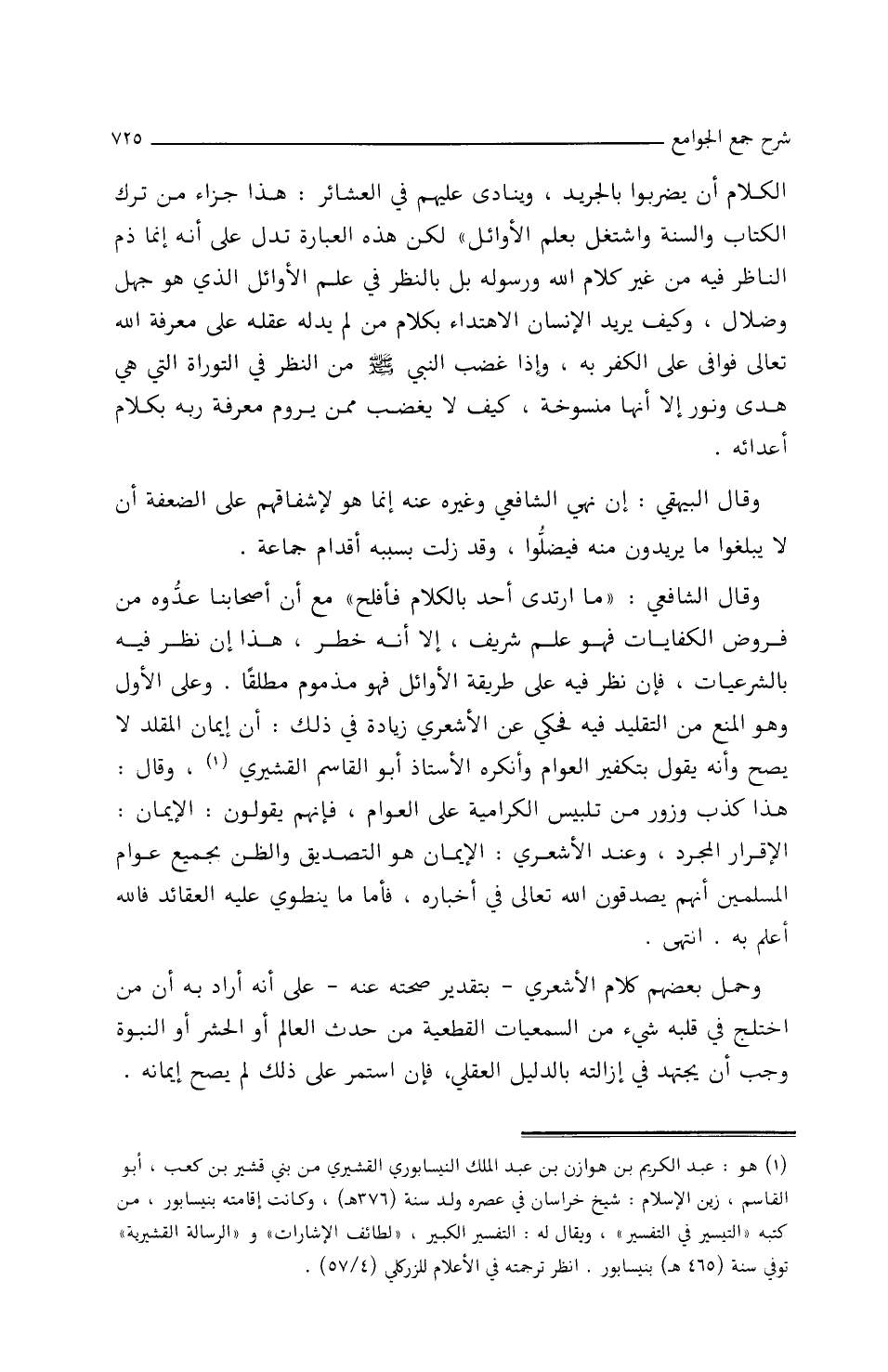 وقَالَ البييهقيُّ: إِنُّ نَهْيَ الشَّافِعِيِّ وَغَيْرِه عَنْهُ إِنَّمَا هو لإِشفَاقِهم علَى الضَّعَفَةِ أَنْ لاَ يَبْلُغُوا مَا يريدونَ مِنْهُ فَيَضِلُّوَا، وَقَدْ زَلَّتْ بسببِهِ أَقدَامُ جمَاعةٍ.