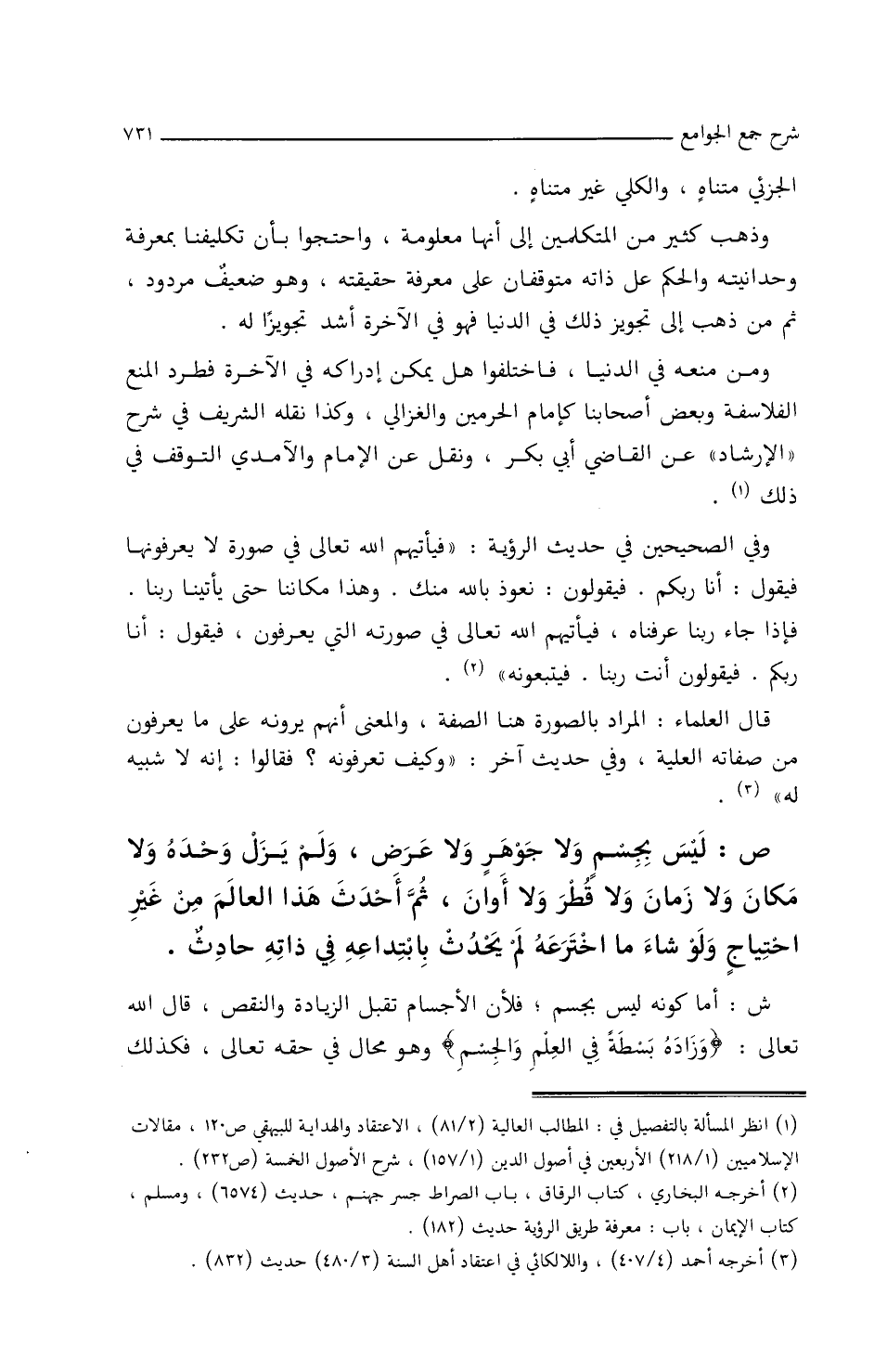 ش: أَمَّا كَوْنُه لَيْسَ بِجْسمٍ؛ فلأَنَّ الأَجسَامَ تَقْبَلُ الزّيَادةَ وَالنَّقْصَ، قَالَ اللَّهُ تعَالَى: {وَزَادَهُ بَسْطَةً فِي العِلْمِ وَالْجِسْمِ} وهو مُحَالٌ فِي حقِّهِ تعَالَى، فكذلكَ
