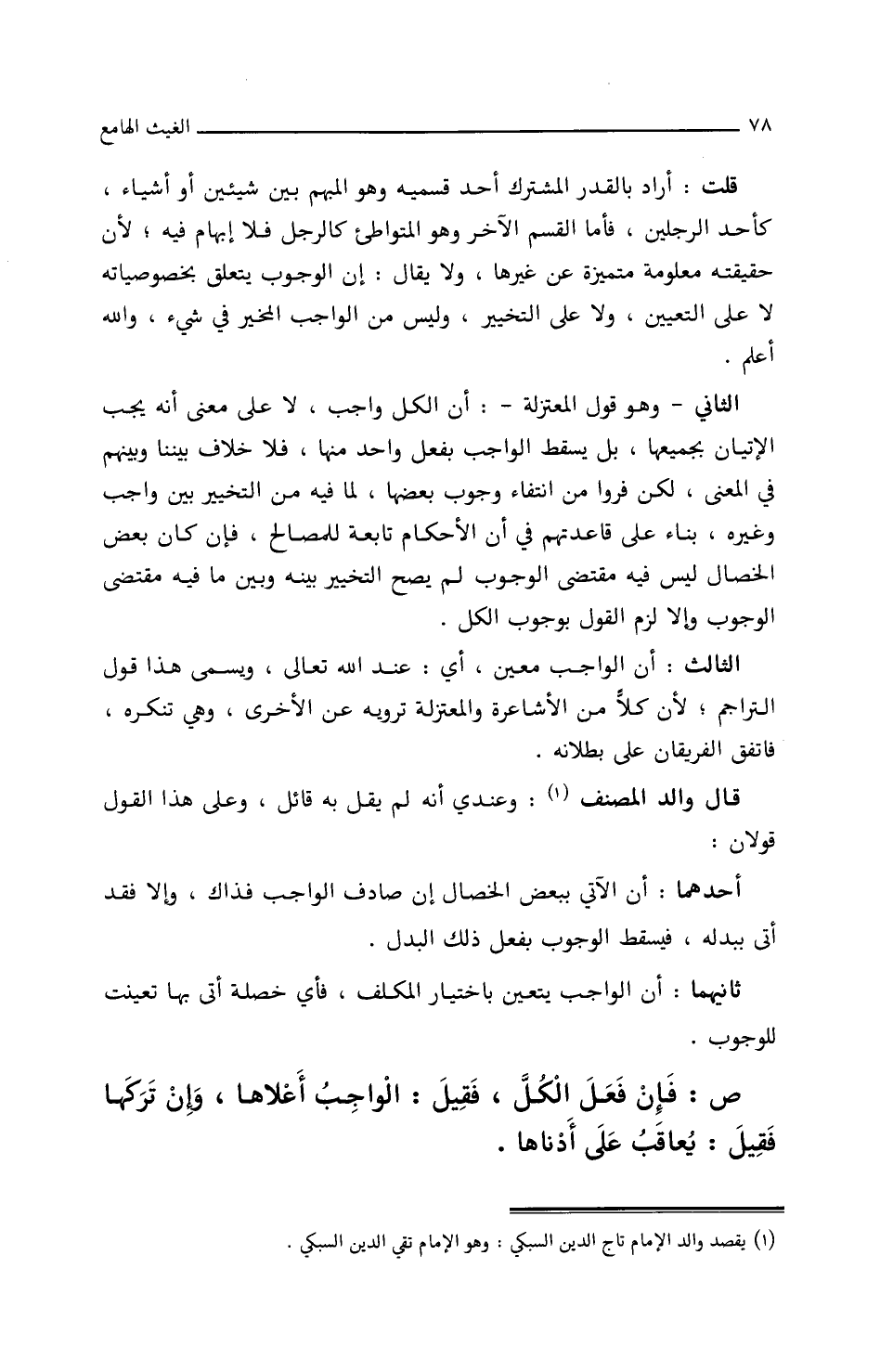 الثالث: أن الواجب معين، أي عند الله تعالى، ويسمى هذا قول التراجم، لأن كلا من الأشاعرة والمعتزلة ترويه عن الأخرى/ (١٥أ/م) وهي تنكره، فاتفق الفريقان على بطلانه.