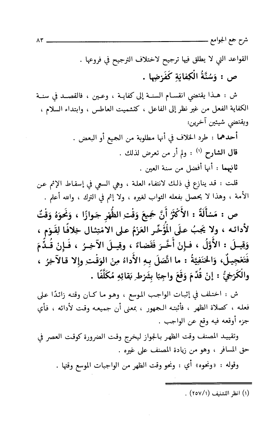 ش: هذا يقتضي انقسام السنة إلى كفاية، وعين، فالقصد في سنة الكفاية الفعل من غير نظر إلى الفاعل، كتشميت العاطس، وابتداء السلام، ويقتضي شيئين آخرين