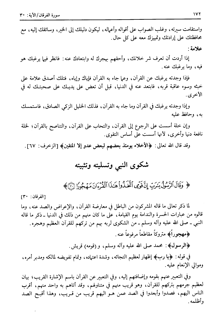 5 - ودعانا القرآن إلى تدبره وتفهمه والتفكر في آياته ولا يتم ذلك إلاّ بتفسيره وتبيينه، فأعرضنا عن ذلك وهجرنا تفسيره وتبيينه.