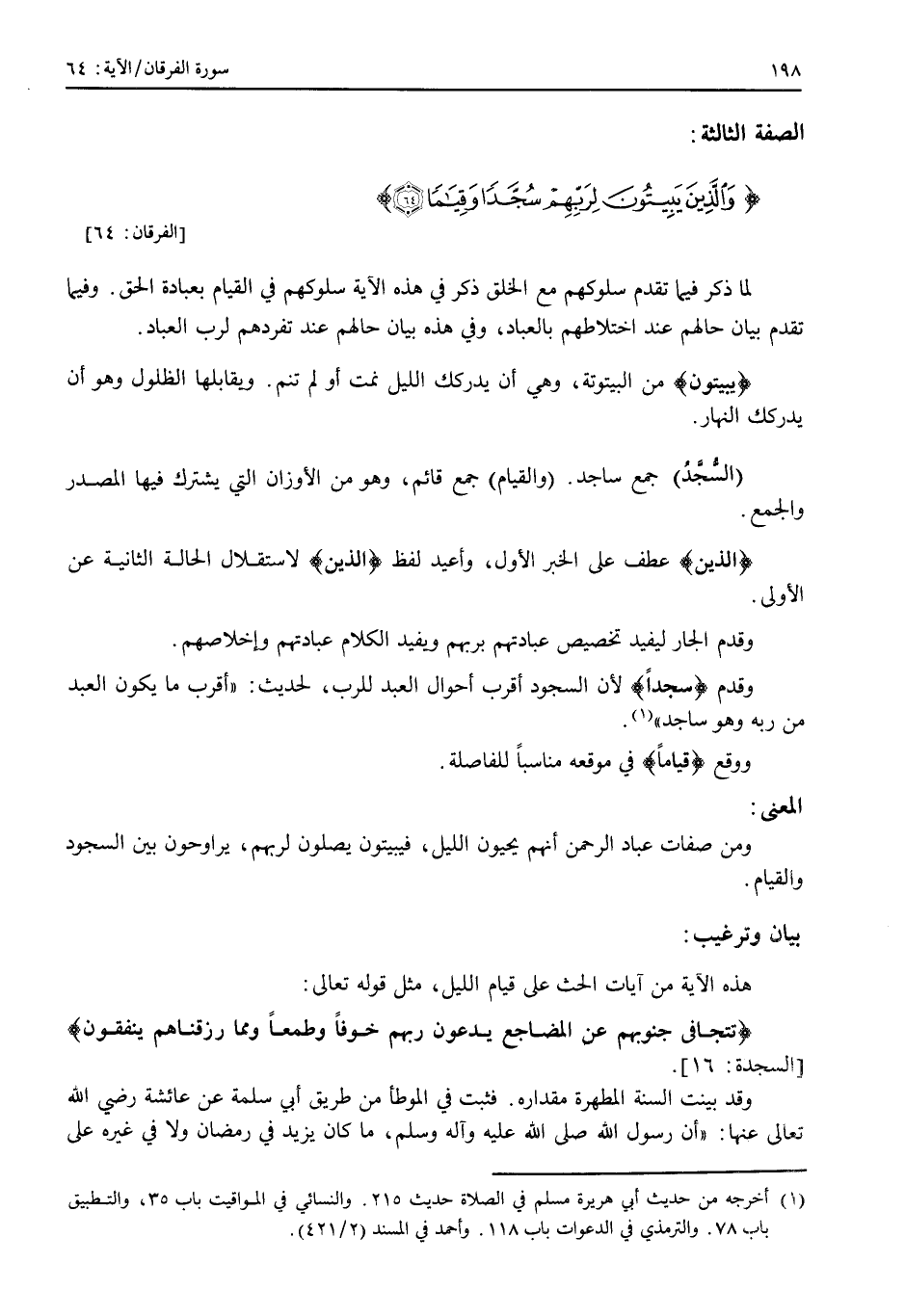وفي هذه السنة العملية الثابتة بيان للقدر الأكمل، الذي يكون به العبد ممن يصدق عليهم هذا الوصف من صفات عباد الرحمان.