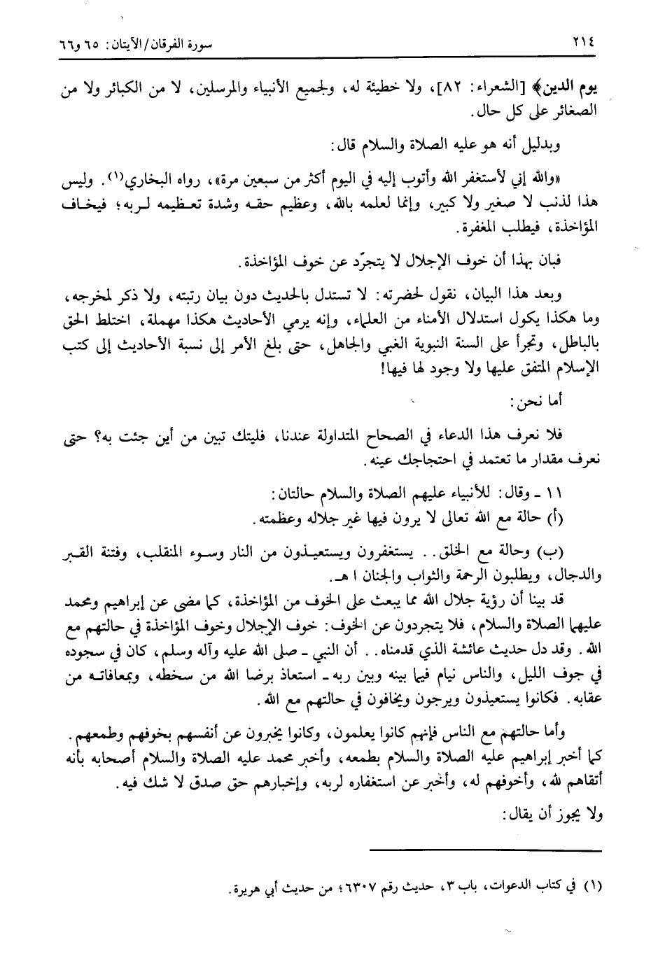 2 - وإن هذه العبادة هي عبادة الكُمَّلِ من عباد الله الذين وصفهم بأفضل صفاتهم في كتابه، وهي عبادة أنبيائه ورسله، الذين ذكر عبادتهم القرآن، وهي عبادة محمد- صلى الله عليه وآله رسلم- التي دلت عليها صحاح الأثار، وعبادة أصحابه الثابتة النقول.