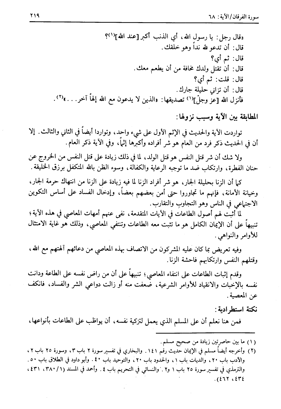 وقد جاء التنبيه على هذا في السنة المطهرة: فعن النعمان بن بشير- رضي الله عنه- قال: قال رسول الله- صَلَّى اللهُ عَلَيْهِ وَآلِهِ وَسَلَّمَ: