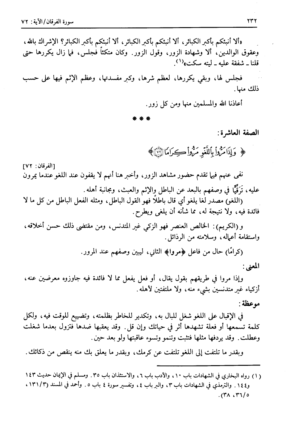بعدما ذكر تعالى من صفات عباد الرحمن ما ذكر .. ذكر استماعهم للتذكير، تنبيهاً على أن التذكير محتاج إليه في كل حال، فإذا كان الموصوفون بتلك الصفات يحتاجون إليه فغيرهم أولى، وذلك لأن الغفلة من طبع الإنسان، ودوام الغفلة صدأ القلوب، وصقالها هو التذكير.